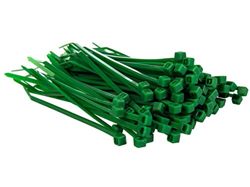 Packages contains: Pack of 100 high quality premium nylon cable ties Size: 100mm x 2.5mm Tensile strength of 8.1kg Colour: Green Material: Durable, UV-resistant nylon polyamide 6/6 Perfect for home DIY, commercial purposes, cable management, special events, packaging or in the garden