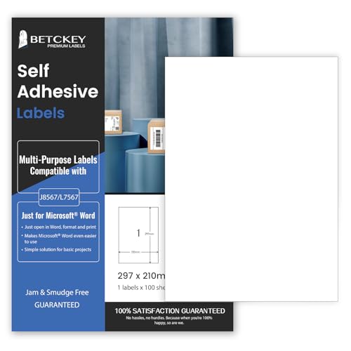 100 Sheets, A4 Sticker Paper Labels, Printable Full Sheet Self Adhesive Labels for Inkjet & Laser Printer, 210 x 297mm