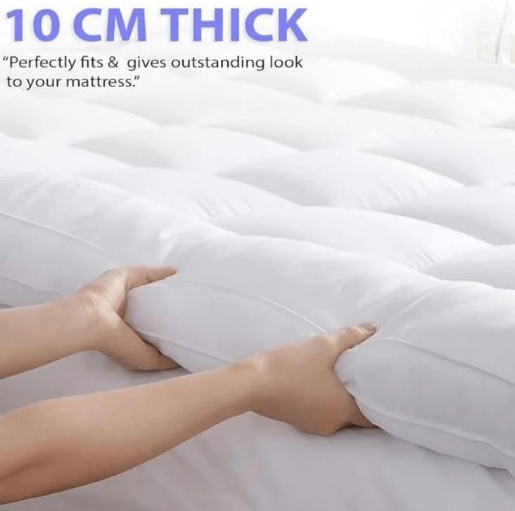 Specification: 10cm Bounce Extra Thick Mattress Topper King Size Bed -1200 GSM Deep Filling Super Soft Fluffy & Comfy, Quilted Box Stitched Mattress Top Covers With Strong Corner Elasticated Straps (King)