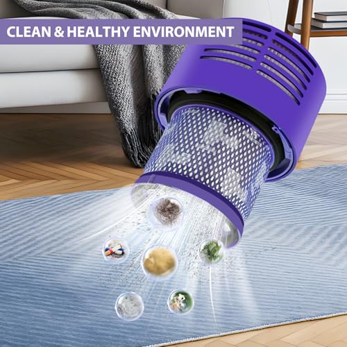 [ADVANCED FILTRATION TECHNOLOGY] Our v10 replacement filters utilize high-efficiency HEPA technology to effectively capture dust, pet hair, and microscopic particles, promoting a healthier home environment.