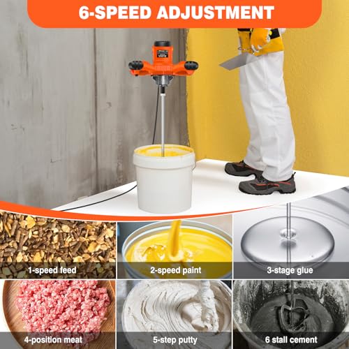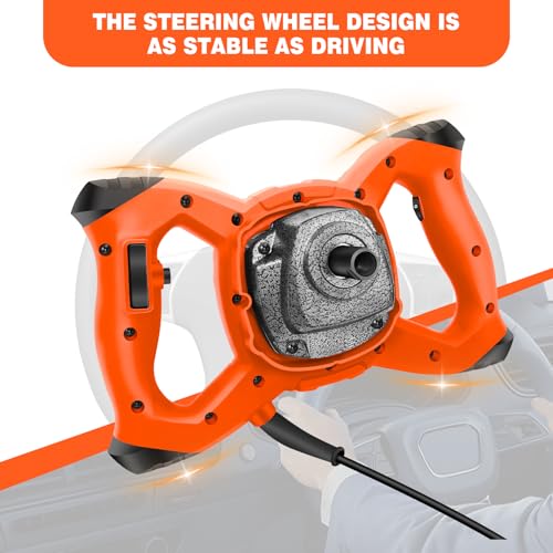 Ergonomic Handle & 6-Speed Adjustable Control: Designed for comfort and control, our mixer features a dual steering wheel handle that reduces vibration and provides a secure grip. With 6 adjustable speed levels, you can easily tailor the mixing process to suit various materials, from cement and paint to gypsum and putty powder. Whether you’re a contractor or a DIY enthusiast, this mixer adapts to your needs.