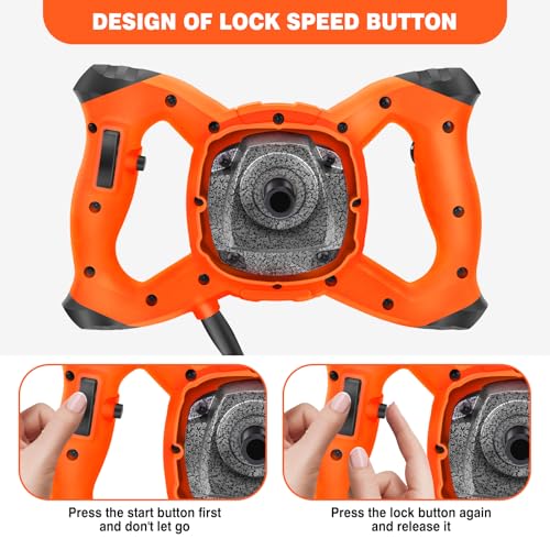 Upgraded Design for Enhanced Convenience: Our mixer includes a switch lock function for continuous operation, reducing finger fatigue during prolonged use. The external carbon brush holder allows for quick and easy replacement, simplifying maintenance. These thoughtful upgrades make this multi-function mixer a reliable tool for heavy-duty tasks, ensuring efficiency and durability.