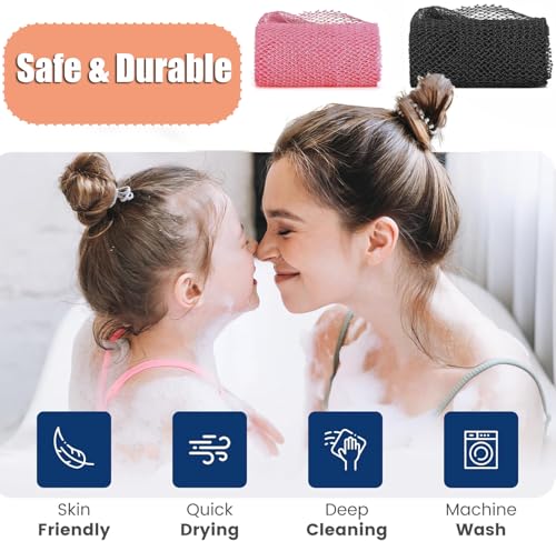 【Enough Quality】You will receive 2pcs Handle Design Back Exfoliating Net Sponges (black and pink) .can meet your need of replacement and can share with your familie.