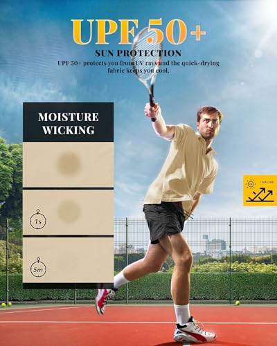 Specification: 33,000ft Men’s Polo Shirt Short Sleeve T-Shirt Golf Polo Moisture Wicking Polos Quick Drying Polos Outdoor Sports Athletic Tennis Performance Breathable T-Shirt for Golf Tennis Work