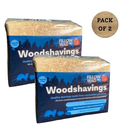 Specification: 3kg Pillow Wad Wood Shavings (1.5kg each) Kiln Dried, Dust Extracted Small Animal Bedding Premium Quality, Soft & Absorbent Pet Bedding for Rabbits, Guinea Pig, Hamster, Sawdust & Other Small Pets.