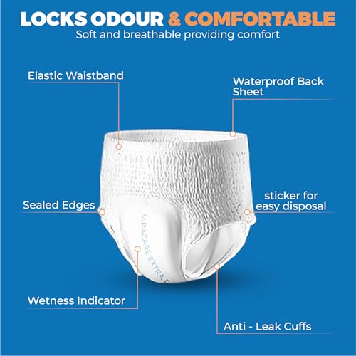 ANTI – LEAK GUARDS: Our pant includes a anti leak guards which protects against leaks. These adult incontinence pull up pants gives you a comfortable fit.Our adults pull ups topsheet with cotton enhanced helps wick away moisture.
