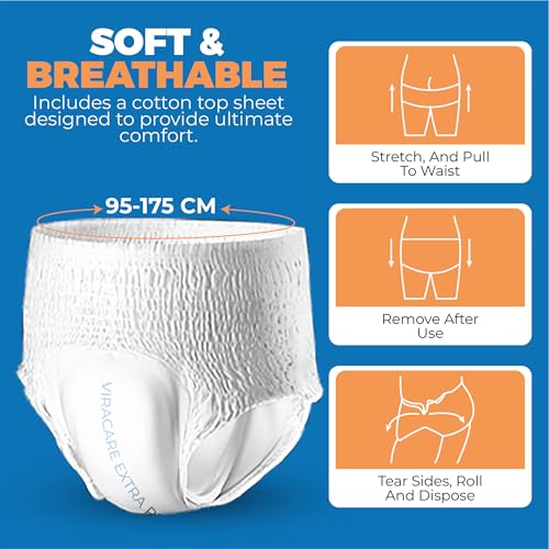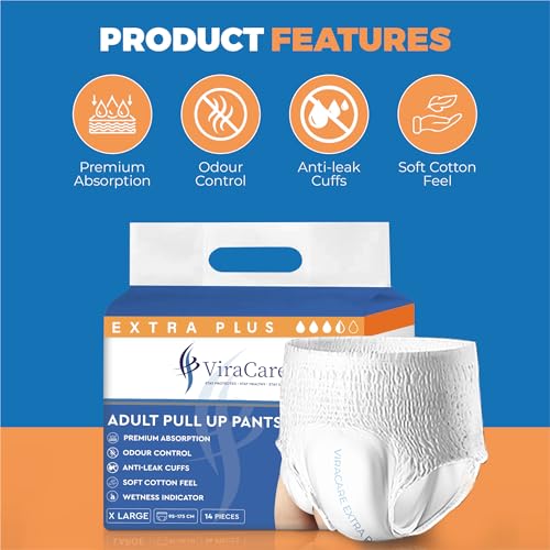 Specification: 56 x Extra Plus Incontinence Pants Women & Men | Adults Nappies | Premium Absorption and Soft-Stretch Waistband | Adults Pull Up Pants | Waist Size X Large 95-175 cm | (4 Packs of 14)