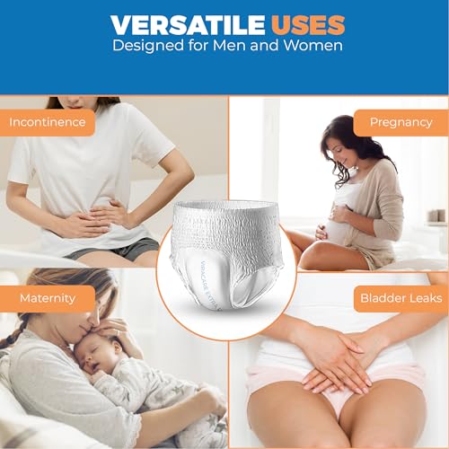 SOFT & BREATHABLE : Our pull up pants adult are designed for ultimate comfort with cotton topsheet.Our adult incontinence pull up pants is breathable , soft and a full-rise soft-stretch waistband provide a snug fit.
