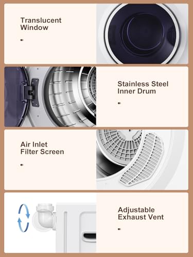 【Excellent Performance】Multiple filtration systems can effectively remove lint and hair, pet hair, etc. At the same time, the removable filter is easy to clean and the dryer will not become clogged with lint (be sure to empty the filter after each use). High-quality stainless steel drum and internal physical structure design could make this dryer machine more durable. Note: 1 hour rest after long working hours is good for the life of the dryer.