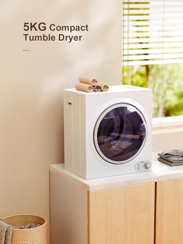 5KG Vented Tumble Dryer, Reemix 1400W Compact Smart Tumble Dryer, Stop Immediately when Clothes are Dry, 5 Auto Drying Modes, for Apartment, Home, Dorm, RVs, White