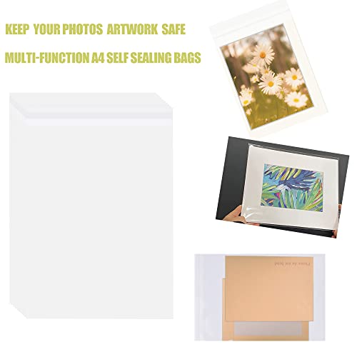 A4 Clear Self-adhesive Bags 100 Pack, 22x30CM Self Sealing Cellophane Display Bags/Sealable Bags, Food Safe, A4 Cello Bags OPP for Cookies,Cards,Envelopes,Pictures
