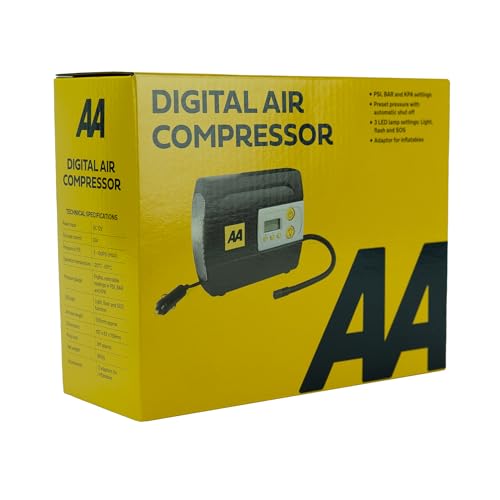 Specification: AA 12V Digital Tyre Inflator AA5502 – For Cars Other Vehicles Inflatables Bicycles – Shows PSI BAR KPA 3-100 PSI – Includes Adaptors, Black