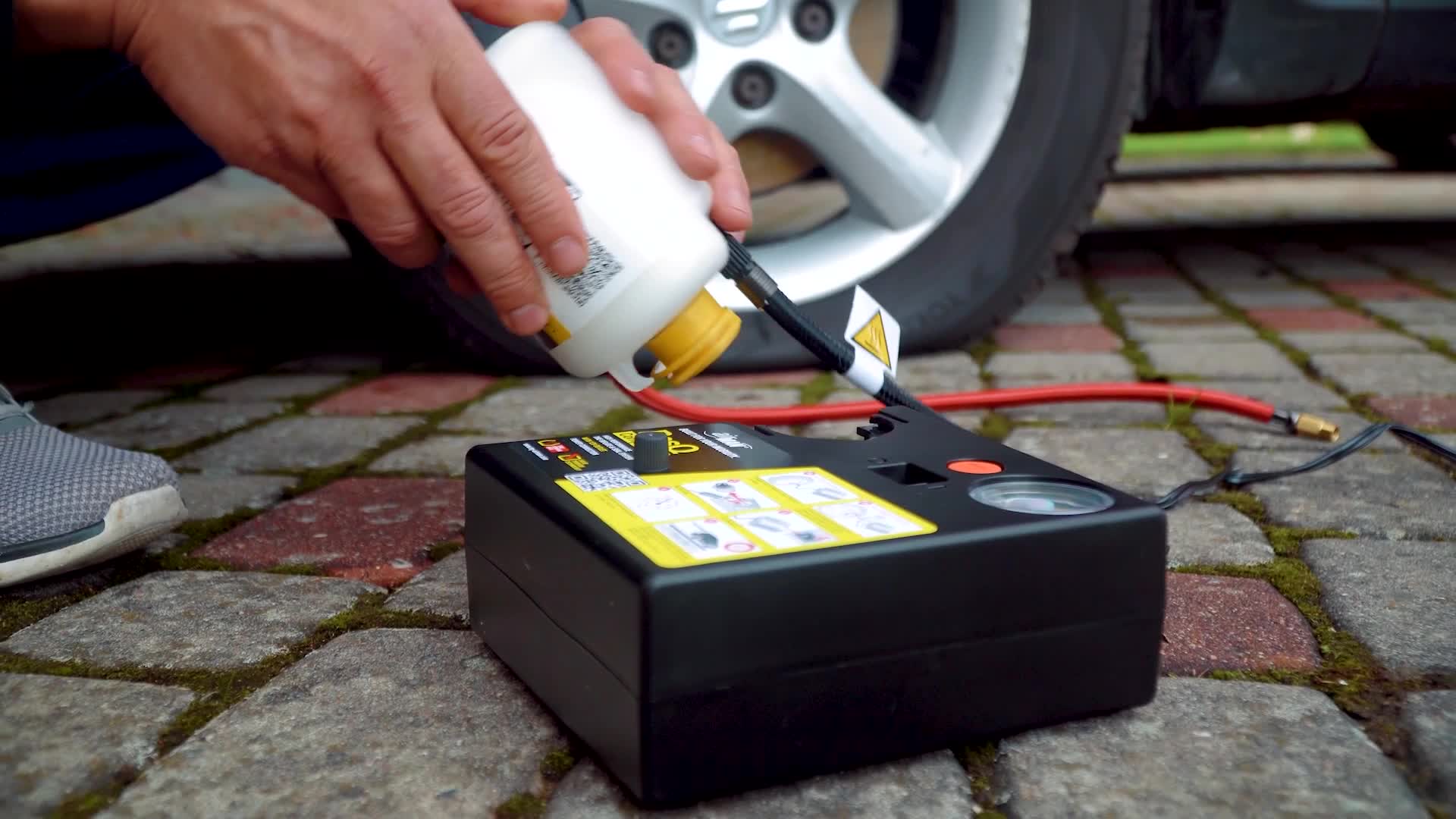 SIMPLE: With AirMan onboard, no tools, strength or technical skills are required to fix a puncture at the roadside. The tyre sealant is pumped through the tyre valve by the powerful air compressor for rapid puncture repair. No squeezy bottles or valve core removal needed.