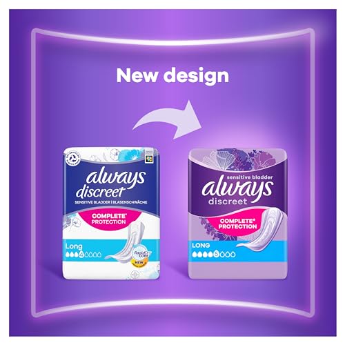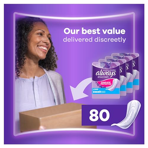 Specification: Always Discreet Incontinence Pads Long, 80 Pads (4 x 20 Pieces) Monthly Pack, Discreet Protection & High Absorbency, Odour-Neutralising (Packaging May Vary)