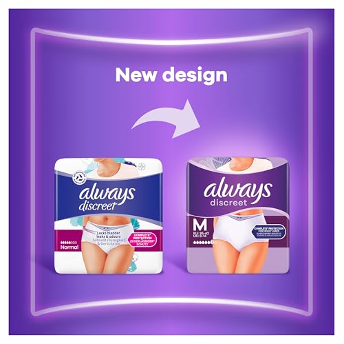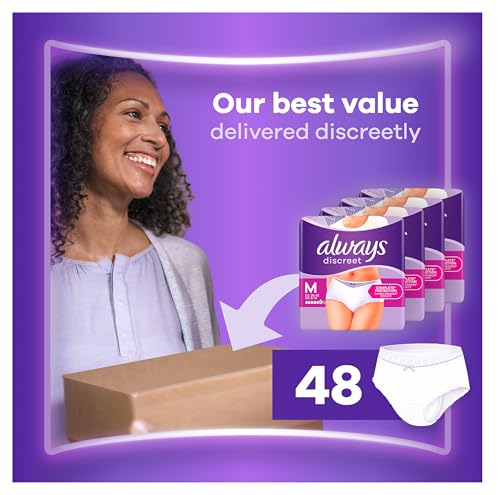 Always Discreet Incontinence Pants Women, Medium, Disposable Underwear Women, UK Size 8-14, White, Absorbency 6, 48 Underwear , Knickers (12 x 4 Packs), Bladder Leak Protection , Maternity Postpartum