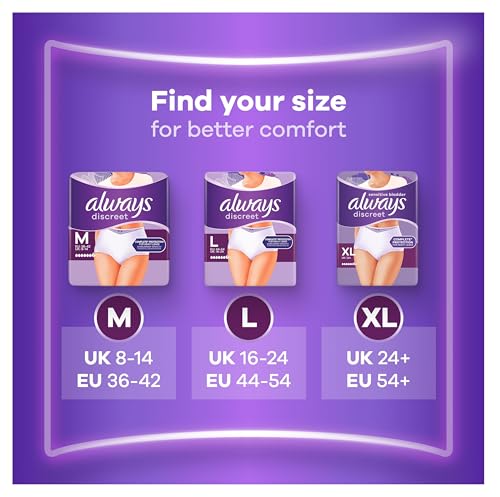 Specification: Always Discreet Incontinence Pants Women, Medium, Disposable Underwear Women, UK Size 8-14, White, Absorbency 6, 48 Underwear , Knickers (12 x 4 Packs), Bladder Leak Protection , Maternity Postpartum