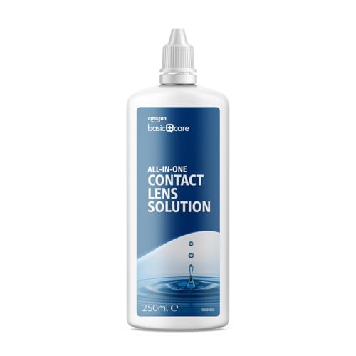 Amazon Basic Care All-In-One Solution for Soft Contact Lenses, 2 x 250ml. 5 to 7 MINUTE CLEANING METHOD Wash hands and dry accurately with a clean cloth. To avoid mistakes, start the treatment always with the same lens. Remove the lens from the eye and put it on the hand palm adding a quantity of solution, enough to wet the lens completely. Rub softly with “backwards and forwards” movements, both lens surfaces for 10-15 seconds, using a finger of the other hand. Rinse carefully and abundantly with more solution in order to remove all deposits. Put the lens in the container provided. Repeat the same operations with the other lens. Fill the container with solution until the dosage line. Close the container tightly and leave the lenses immersed for at least 5 to 7 minutes. Before wearing the lenses, rinse them with the solution. LONG TERM CLEANING METHOD Wash hands and dry accurately with a clean cloth. To avoid mistakes, start the treatment always with the same lens. Remove the lens from the eye and immediately place it into the container provided filled with the until the dosage line. Repeat the same operations with the other lens. Close the container tightly and leave the lenses immersed for at least 2 to 3 hours, or overnight. Before wearing the lenses, rinse them with the solution.Please read the instruction leaflet carefully before use. Any unused liquid should be disposed of. Do not use in case of damaged seal, as sterility cannot be guaranteed. To avoid any contamination, do not put the dropper in contact with any kind of surface. Ensure that the bottle is well closed after product use. Store the bottle away from heat fonts and in any case under 30°C. Do not use after the expiry date. This product is a medical device
