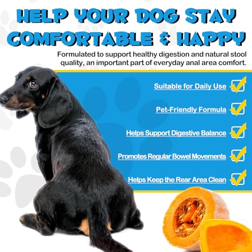 Maintains Healthy Stools for Natural Comfort – Psyllium Husk in our formula helps maintain firm, well-formed stools. This natural ingredient supports your dog’s regular digestive rhythm and contributes to anal gland comfort through normal bodily processes.