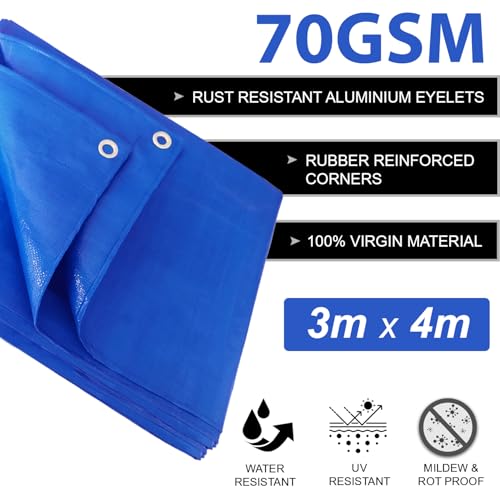Specification: ANSIO Tarpaulin 3m x 4m / 10ft x 13ft Tarpaulin Sheet 70 GSM Economy Tarpaulins – Blue