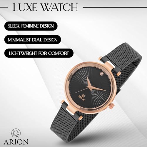 Specification: Arion Women’s Analog Quartz Watch 26mm Rose Gold-Painted Brass Wristwatch, Premium Fashion Dress Timepiece with Gift Box. Gift for Women Ladies Girls