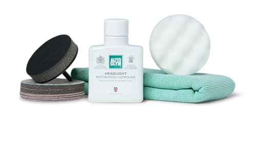 Autoglym Headlight Restoration Complete Kit, Quickly Restore Cloudy And Discoloured Headlights, Designed For Use With An Electric Drill, Includes Sanding Discs, Restoring Compound And Microfibre Cloth