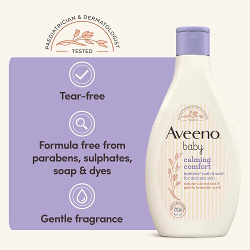 Specification: Aveeno Baby Calming Comfort Bedtime Bath and Wash (1 x 250ml), Tear-Free and Soap-Free Baby Wash with Gentle Lavender & Vanilla Scent, Gently Cleanses Skin Before Bedtime, for Delicate Skin