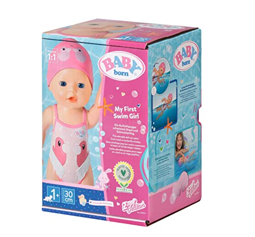 Specification: BABY born My First Swim Girl Doll 30cm – For Toddlers 1 Year and Up – Easy for Small Hands – Includes Bathing Suit and Cap