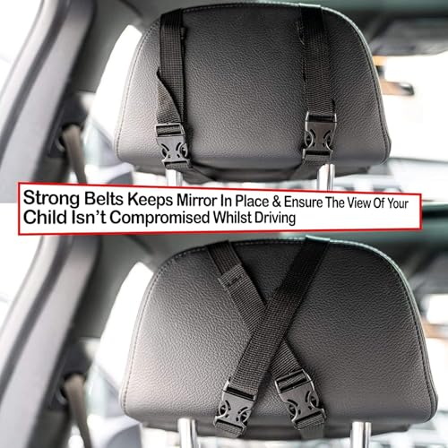 🎚️ELASTIC AND ADJUSTABLE STRAP: Rear view mirror have dual straps are designed which adjust on any headrest, sturdy base slip won’t slip out of place. East fastening buckles & strap which prevents the mirror from relocate and swing around.