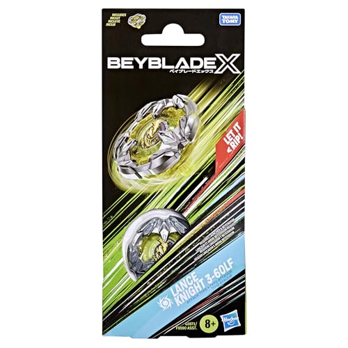 Experience Beyblade X, the next generation of Beyblade stadiums, launchers, and tops! The Beyblade X Lance Knight 3-60LF Booster Pack Set which includes 1 right-spinning Attack Type top (Beystadium and launcher required, sold separately). Launch right into battle or reconfigure the interchangeable blade, ratchet, and bit of this Booster Pack with those of other Beyblade X tops (sold separately) to create your perfect top. Beyblade X features the X-Celerator Gear System: The gear of a Beyblade X top engages the rail of the Beystadium arena, super-accelerating the top into an Xtreme Dash around the stadium for crushing collisions and epic bursts. Launch your tops into fierce clashes against opponents’ tops, scoring points with each confrontation – first to score 4 points wins. Hasbro Beyblade toys with authentic Takara Tomy die-cast metal tops make great kids gifts for boys and girls ages 8 and up. HASBRO and all related trademarks and logos are trademarks of Hasbro, Inc.
