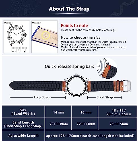 Specification: BINLUN Leather Watch Strap 14mm 16mm 18mm 19mm 20mm 21mm 22mm Quick Release Premium Alligator Pattern Leather and Breathable Silicone Hybrid Watch Bands Replacement Strap for Men Women