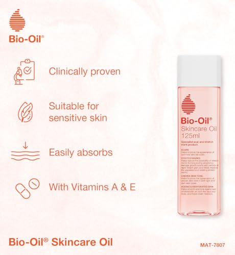 PurCellin and Vitamin A and E Complex For Skin Texture & Hydration – With Bio-Oil, Skin Care doesn’t stop with stretch marks and scars, Bio-Oil is a non greasy body moisturiser oil thanks to a PurCellin Oil and Vitamin A and E complex