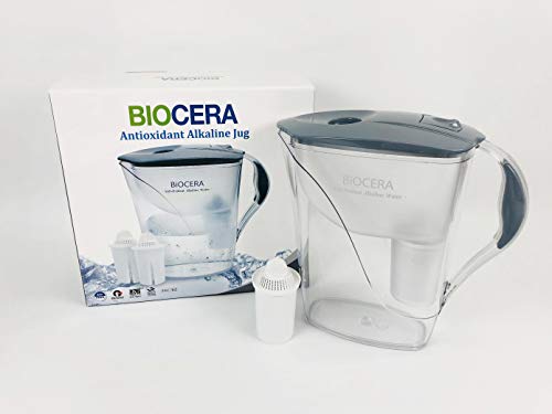 Specification: Biocera Alkaline Water Filter Jug With 2 Filter Cartridges – Produces Alkaline, Antioxidant, Hydrogen Rich Water – BPA-Free – NSF Certified – Cost Effective – Simple To Use – Grey Lid and Handle