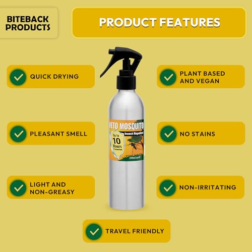 Specification: Biteback Products ‘Veto Mosquito’ – 250ml Family-Sized Insect Repellent Spray with 20% Icaridin (Picaridin), Long-Lasting DEET-Free Mosquito Protection, Effective for All Ages – 1pc