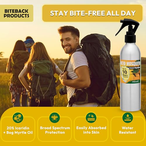 Biteback Products ‘Veto Mosquito’ – 250ml Family-Sized Insect Repellent Spray with 20% Icaridin (Picaridin), Long-Lasting DEET-Free Mosquito Protection, Effective for All Ages – 1pc