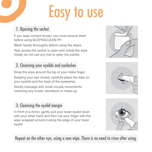 EYELID CLEANSING – Blephaclean PF Wipes are a daily eyelid wipe designed to cleanse, moisturise and soothe the sensitive area of skin around the eyelids and eyelashes. Gently cleanses and removes, dirt, dust, pollen and make-up, without irritating the eyes. Suitable for contact lens wearers (remove lenses from eyes before using the wipes), and for before and after eye surgery.