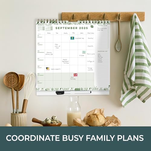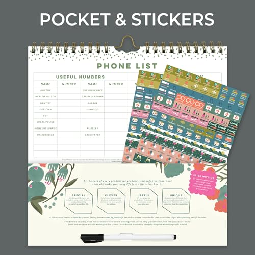 Perfect for the whole family to see what events are coming up each week, this family organiser calendar 2025 also has space for useful numbers and birthdays, pocket & pen to write on the overlay.
