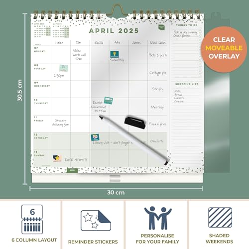 Specification: Boxclever Press Family Weekly Planner 2025. 2025 Calendar UK with 6 Columns. Family Calendar 2025 runs Jan – Dec’25. Wall calendar 2025 with Lists, Pocket & Stickers (12 Month)