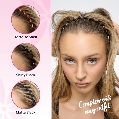 Discover the perfect blend of style and practicality with these 3-pack of Zig Zag headbands. Featuring a sleek shiny black, sophisticated matte black, and timeless tortoise shell, these headbands are designed to complement any outfit. Their wavy teeth design, effortlessly keep your hair out of your face throughout the day. Whether you’re heading to the office, a night out, or a casual day, our headbands provide a chic finishing touch. Crafted for comfort and durability, they offer a secure fit without compromising on style. Enhance your look effortlessly with this must-have accessory set. PETA Approved – Cruelty-Free & Vegan Friendly.
