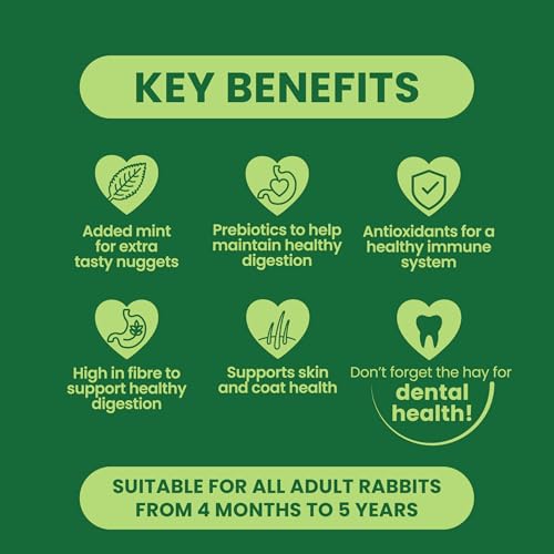 Specification: Burgess Excel Rabbit Food with Mint, 1.8kg – Rabbit Nuggets for Adult Rabbits – High Fibre, Mint Rabbit Pellets