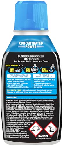 Specification: Buster Bathroom Drain Unblocker 300ml, Pack of 2 – Sink Unblocker Removes Hair & Sludge in Showers, Baths & Sinks. Fast-Acting Shower Drain Unblocker Clears Blockages & Slow-Draining Water