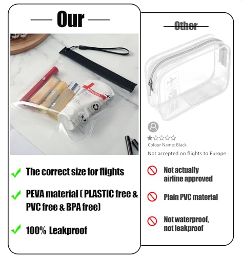 Much better than any plastic bag: These clear toiletry bags are made from thick(0.3mm), rubbery feel EVA material ( PLASTIC free & PVC free & BPA free), which is soft, comfortable, and durable. Compared to plastic material clear travel bag, our EVA material clear airport liquid bags are more soft and comfortable