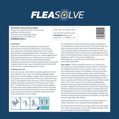 Specification: Cat Flea Treatment Spot On x 6 – Flea Treatment Cat Spot On for Cats & Kittens Over 1kg – 6 Pipettes, 6 Doses – Fast-Acting FleaSolve Solution