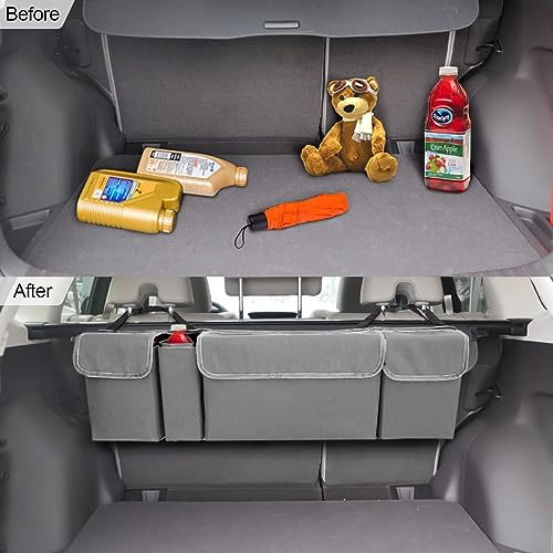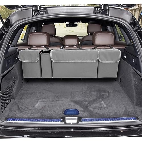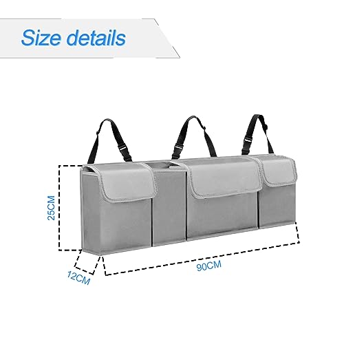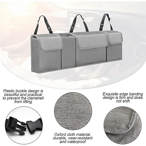 CGEAMDY Car Trunk Organizer, Backseat Hanging Organizer for SUV, Truck, MPV, Waterproof, Collapsible Cargo Storage Bag with 4 Pockets, Car Interior Accessories for Men and Women (Grey)