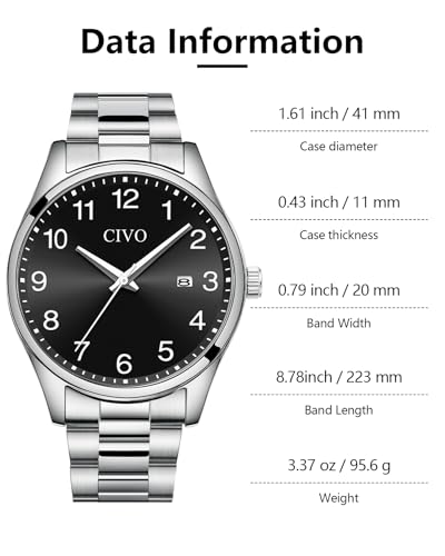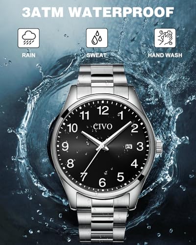Specification: CIVO Watches Men Stainless Steel Analogue Quartz Minimalist Mens Watch Waterproof Wrist Watches Easy Read Gifts for Mens