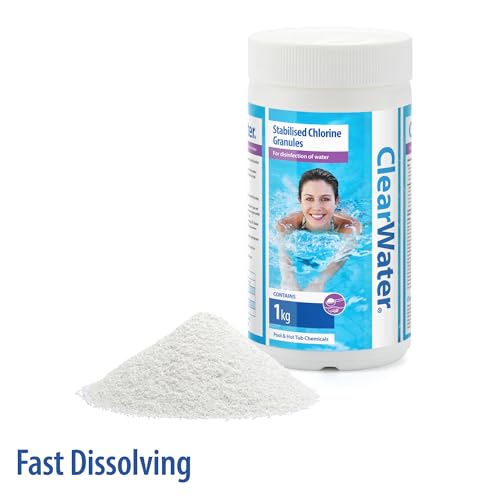 Clearwater Chlorine Granules for Hot Tub Spa and Swimming Pool Water Treatment for Rapid Disinfecting and Cleaning, 1 kg