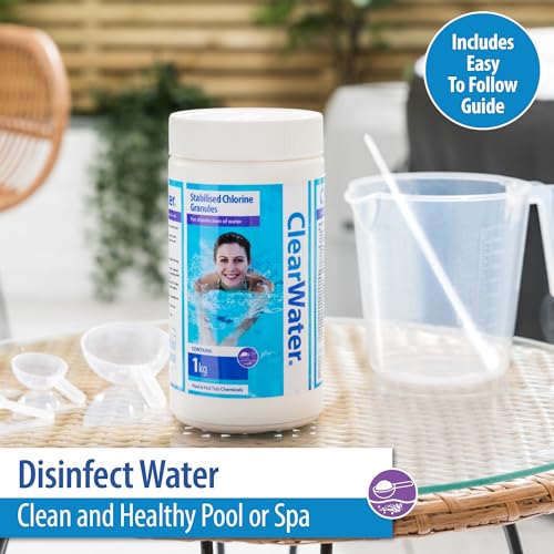Specification: Clearwater Chlorine Granules for Hot Tub Spa and Swimming Pool Water Treatment for Rapid Disinfecting and Cleaning, 1 kg
