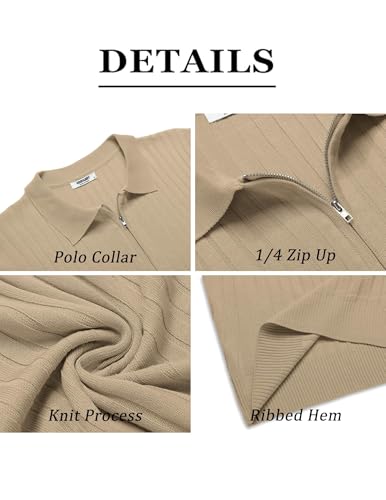 Specification: COOFANDY Men’s Polos Short Sleeve Zip Knitted Polo Shirts Stretch Golf Vertical Striped Polo T-Shirt