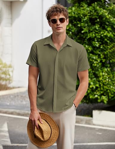 Specification: COOFANDY Mens Short Sleeve Casual Shirts Stretch Summer Beach Textured Wrinkle Free Holiday T Shirts for Men