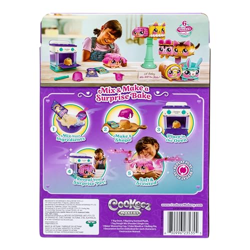 Specification: COOKEEZ MAKERY Lil’ Bakez Oven, Mix The Dough And Make A Scented Surprise Pet In The Form Of A Deliciously Scented Plush Toy, 6 Different Scented Plush Friends To Make, Bake And Collect