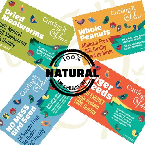 ✓BIRD PEANUTS – THE BIRD FOOD SUPER FOOD! Cutting it Vine finest grade peanuts are the ultimate high protein, high fat, high calorie, bird food super-food! With 22-30% Protein and 44-50% healthy Fats, our peanuts can be fed year-round, keeping the birds warm through the winter and flourishing in the growth season. Rich in vitamins A, E, potassium and iron, and packed with 8.5% fibre, our peanuts keep the birds’ feathers healthy, beaks sharp and their bellies full!
